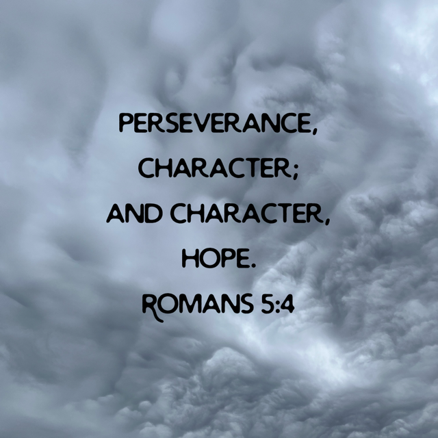 “Not only so, but we also rejoice in our sufferings, because we know that suffering produces perseverance; perseverance, character; and character, hope. And hope does not disappoint us, because God has poured out His love into our hearts by the Holy Spirit, whom He has given us” (Romans 5:5-5).