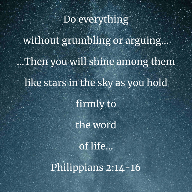 Lord, please help us shine like stars. Help us to love in Your strength. This day will quickly end. Night falls sooner in autumn. Let us not be lulled by the mundane things in our days. Let us instead do everything with cheerful hearts as unto You. This is the way we hold out Your truth to a world in need of light.